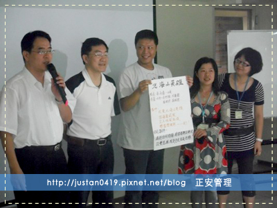 我們這一班--「人力資源管理班」由張惠玲和孫麗龍兩位老師來授課,我們報到後已經分好小隊,第一週的課程就從取小隊的組名,介紹隊員,隊呼及上課的目的與期待開始。總共有六個小隊上台報告,分別是:GAGA、北海小英雄、TTQS暴龍、一支草、金錢抱、六六大順。