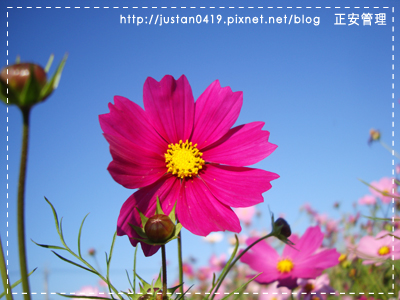 秋天開花的大波斯菊,纖細柔弱的莖上頂著一朵碩大的花,迎著風忽左忽右,舞步比芭蕾舞者更輕盈,叫人忍不住心生憐愛.看它細瘦的莖葉似乎禁不起風吹,馬上就會落英滿地,使人聯想起春天的櫻花,所以也有人叫它『秋櫻』。